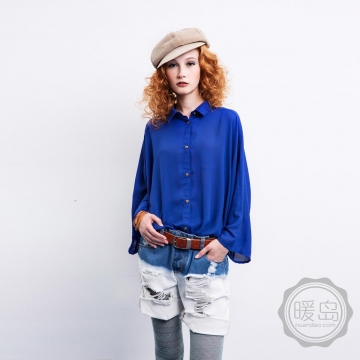 全棉无弹牛仔宽腿卷边短裤,裤身洗水采用手工褪染工艺,腰口是藏青,胯部至脚口是白,没有中间过渡色;一边净白如雪,一边冷峻如山,无关四季,钟情于蓝与白的世界。
