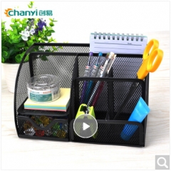 创易 圆形/方形铁丝网状笔筒办公商务金属收纳笔筒 圆形